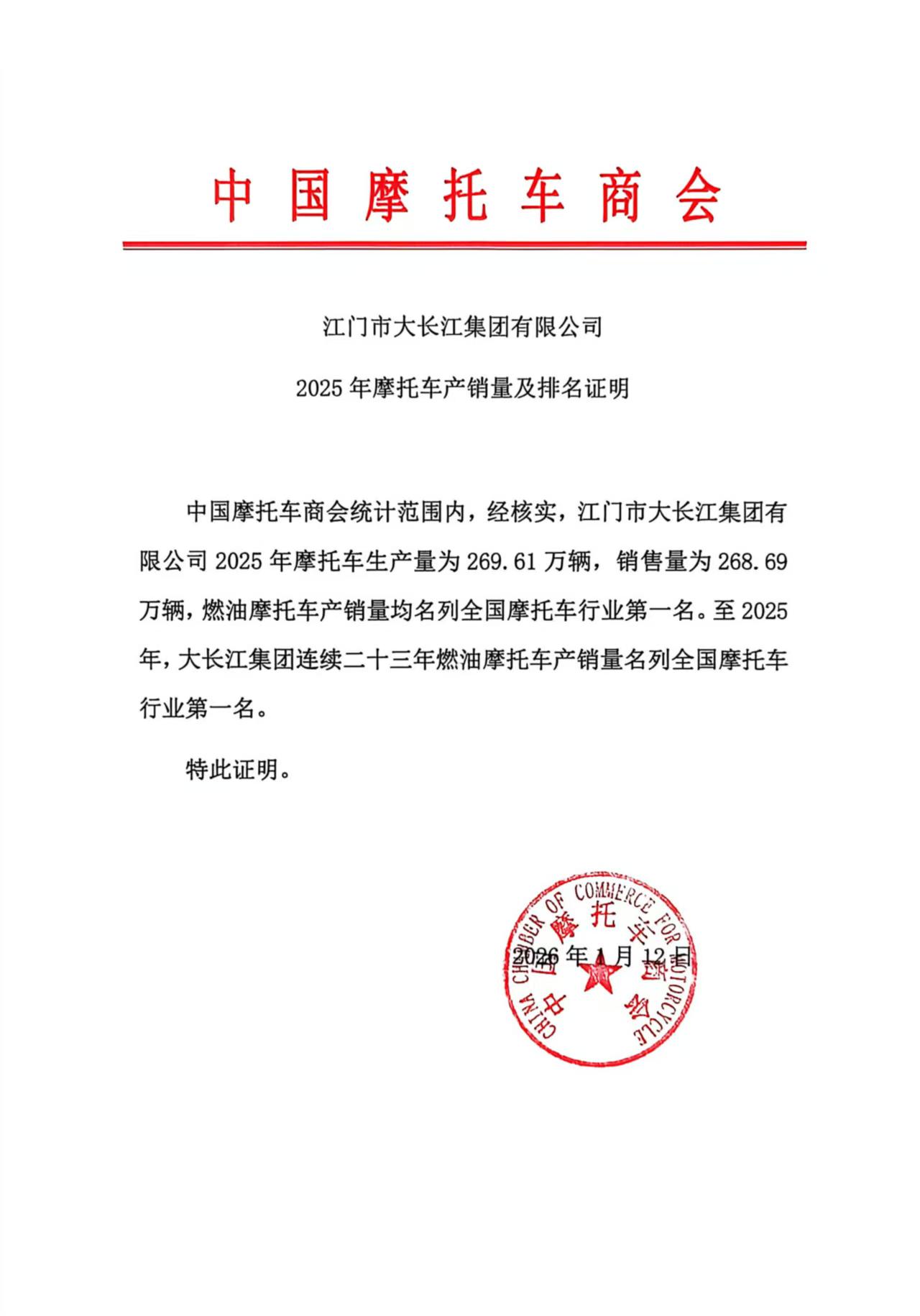 2003-2025年,在中國摩托車商會的“摩托車產銷量及排名”中,豪爵鈴木燃油摩托車連續23年全國銷量第一。今天,豪爵就像一個令人喜愛、值得信賴的朋友一樣,出現在千家萬戶的生活之中,大江南北、大街小巷,到處都能看到豪爵的身影。